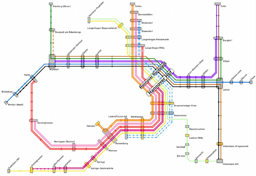 Unter dem sperrigen Titel "Bahnknotenuntersuchung Hannover II" hat die Region Hannover ihren Plan für das S-Bahn-Netz der Zukunft vorgestellt. Das Ziel: Mit Ausbau und Anpassung der Infrastruktur die Kapazität erhöhen und gleichzeitig die Attraktivität steigern. Dafür soll das bisherige Netz umfangreich überarbeitet und in zwei Achsen unterteilt werden. Entlang der neuen Nord-Süd-Achse verkehren die S-Bahnen auf der Relation Weetzen - Langenhagen, auf der neuen Ost-West-Achse die S-Bahnen auf der Relation Lehrte-Wunstorf. Fahrgäste aus dem Bereich der Stadt Ronnenberg könnten dann nicht mehr wie bislang ohne Umstieg in Richtung Wunstorf fahren. Im Gegenzug wäre kein Umstieg mehr nötig, wenn das Ziel Langenhafen oder Mellendorf heißt.